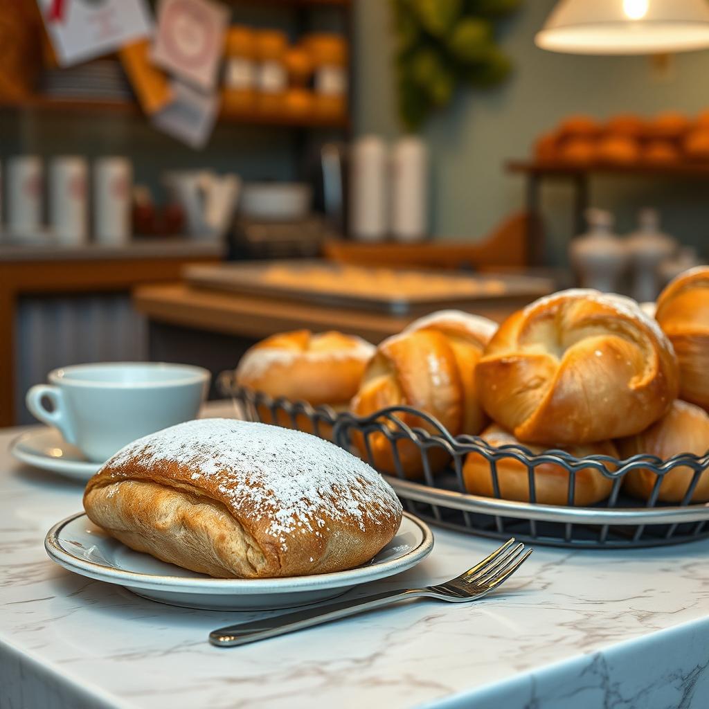 Питательный завтрак с булочкой из печи, напитком и свежей выпечкой. Идеально для начала дня.